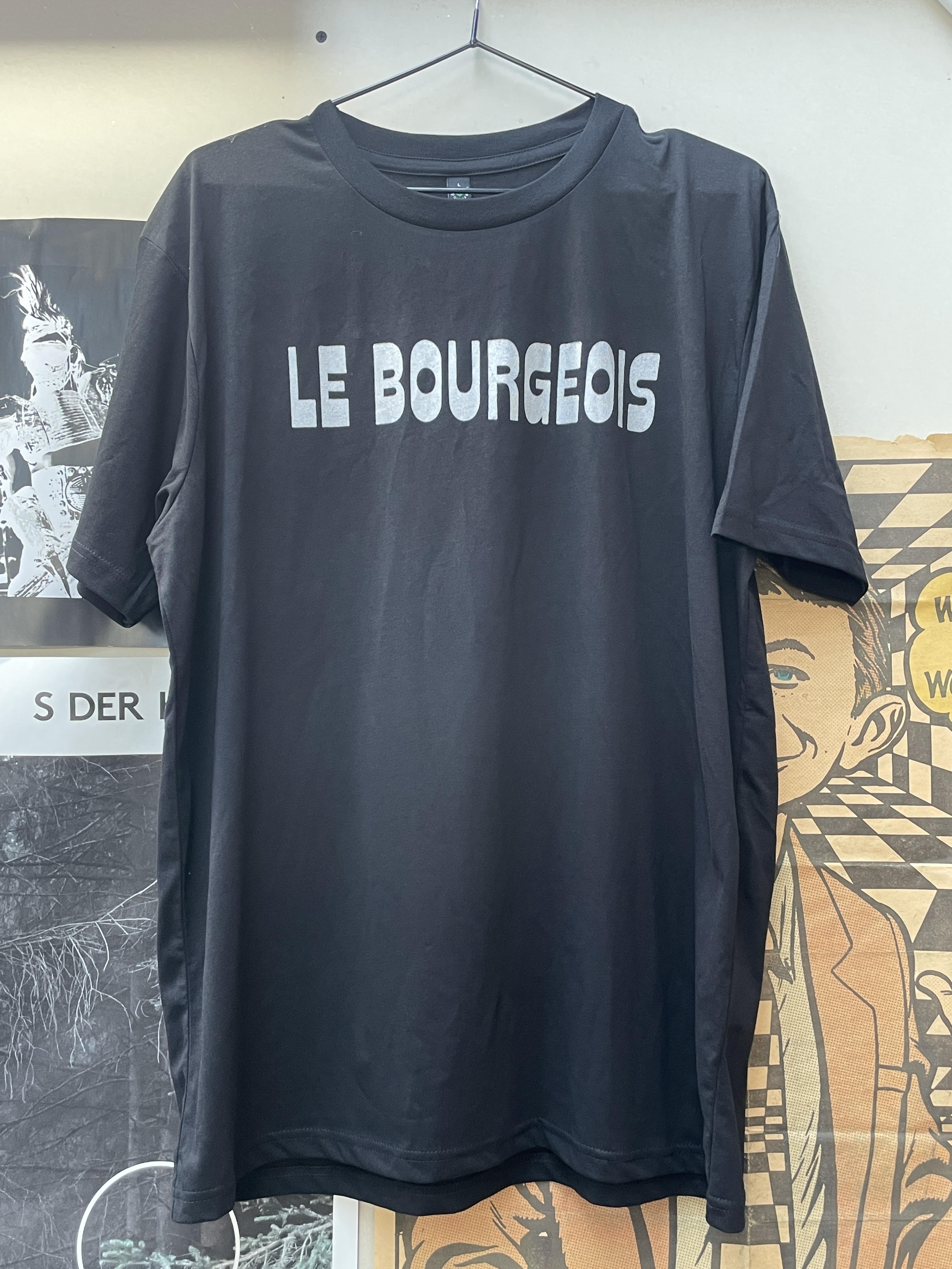 Le Bourgeois t-shirt. Silver ink Screen-print on black organic cotton t-shirt. Sizes XS/S/M/L/XL. £25.00 + p+p